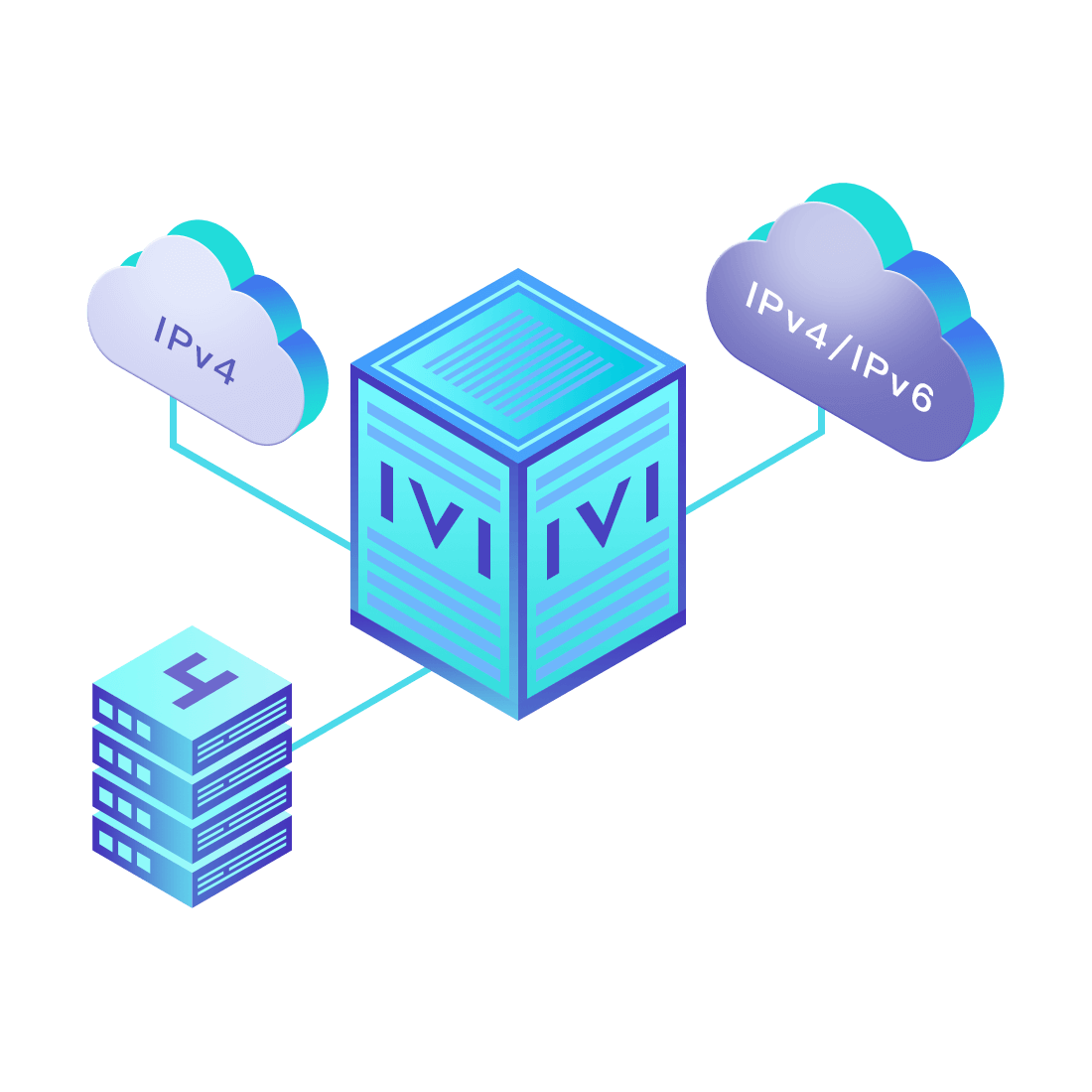 對(duì)正在進(jìn)行IPv6整體升級(jí)規(guī)劃的運(yùn)營(yíng)商,應(yīng)用IPv6升級(jí)方案2.5,通過(guò)IVI無(wú)狀態(tài)翻譯技術(shù)和純IPv6接入網(wǎng)絡(luò),為雙棧客戶端和雙棧服務(wù)器提供連通服務(wù)。